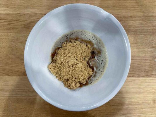 You should be left with about 130g of brown butter. Let it cool for 5–10 minutes before using. If your butter is less than 130g, just add regular melted butter until you get 130g.