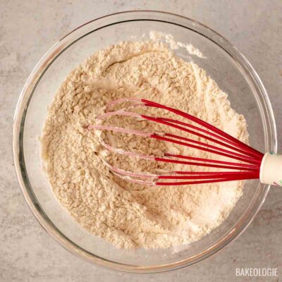- Make the flour mixture. In a medium bowl bowl, whisk together flour, salt, baking soda, and baking powder. Set aside.208g (1⅔ cup) all-purpose flour, ½ tsp fine sea salt, ½ tsp baking soda, ¼ tsp baking powder