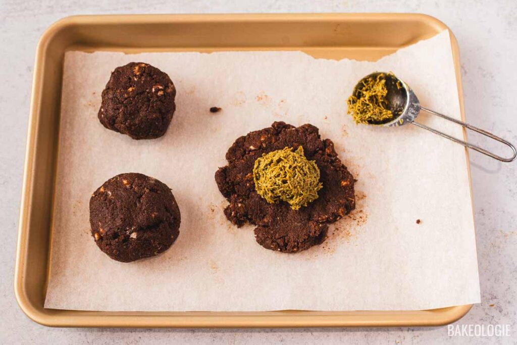 If you’ve ever bitten into a Dubai-style pistachio chocolate bar or cookie and wondered what that irresistible crispy layer is, this pistachio kataifi is the magic ingredient. Kataifi dough gets fluffed, coated in butter, and toasted—either in the oven for an even, hands-off crisp or on the stovetop for a quick, small-batch toast—until golden and shatter-crispy, then folded with pistachio cream or pistachio paste. The result is an addictive, crunchy pistachio filling that instantly elevates anything you add it to—from stuffed cookies to chocolate bark to cheesecake toppings.